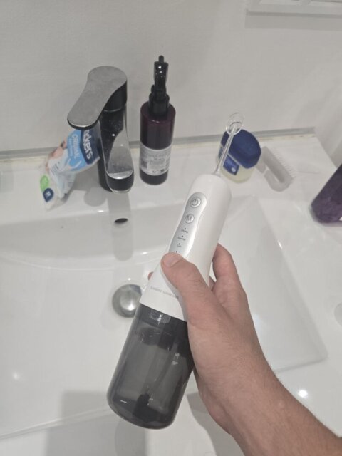 Jet d’eau haute précision + gratte-langue intégré = un nettoyage complet et cliniquement efficace.